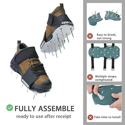 For a fun workout, attach these spikes to a pair of boots and stomp around your yard to aerate it. Our aerators are made up of a sturdy plastic base with good heel support, 13 heavy duty metal 40 mm spikes on each sandal. Wear our lawn aerator shoes and walk around to cover the entire length of your garden for a way greener, healthier and more beautiful lawn and grass. I have both, so i have seen the difference. They have large spikes on the bottom that dig into the lawn as you walk around doing other yardwork.